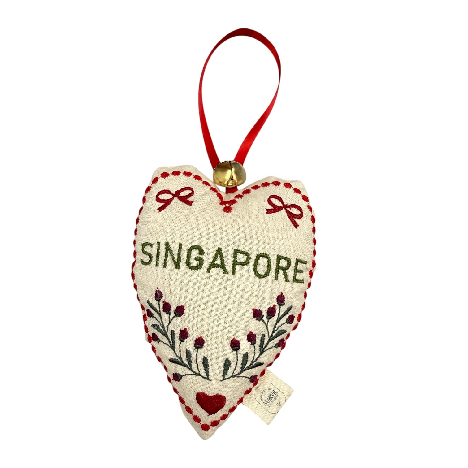 Add a touch of handmade charm to your Christmas tree with this beautiful set of embroidered ornaments. Each piece is carefully crafted in my studio — one in the shape of a heart and the other a Christmas tree — both featuring delicate embroidery, festive ribbons, and golden bells.